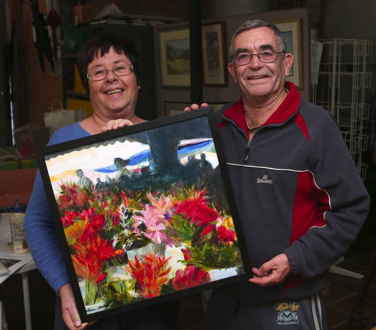 Robin Matfin, of Cleveland, and Stuart Hall, of Kooralbyn, prepare for Coochie Art Show starting on Friday at RPAC. Photo by Stephen Archer