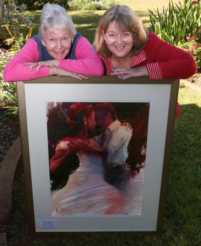 Pomo for Coochie Art Show to start Friday July 25 at theb Redland performing Arts Complex. Pics By Stephen Archer. Gillian Rich of Cleveland and Hilary Wakeling of Birkdale.