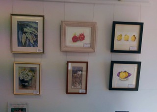 Below is the fantastic wall display at Bendigo Bank, at Victoria Point, showcasing the works of two of our very talented group – Gillian Rich and Clare Loveband. Beautiful display!