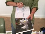 Below are just a few magic moments with Maria, as she made composition, design and the importance of simple thumbnails, so very clear. Yes, we were learning Acrylic florals, a la Maria, but the most important lessons she taught were about how to achieve strong, interesting compositions, via thumbnails, BEFORE we start painting! And to stick to the thumbnail that works best to achieve a well-designed composition. So much to learn and so much fun! Lots of work to finish, but now we know where we’re going. Thank you Maria, it was great!