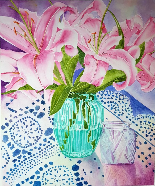 cut glass vases with lilies