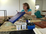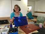 Coochie members enjoyed another informative and wonderful lesson with our talented and inspiring tutor, Hilary Wakeling. Today, Hilary was teaching the power of overlapping shapes and different methods to design a pleasing composition. Hilary was demonstrating using Atelier FreeFlow, which proved ideal for this method. The more abstracted designs required concentration to ensure the concept was executed correctly and the members produced some excellent works. We were delighted to welcome back to our ranks a former member, Lyndall! It’s great to have you back with us Lyndall. Coochie members will finish the year with our Christmas Party next Tuesday, this year on Coochie!