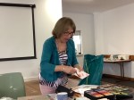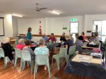 Yesterday, in the teeth of strong winds, relentless rain and rough seas, Coochie Art Group enjoyed another fabulous day, learning and creating with our brilliant tutor, Jan Lawnikanis. It has been such a wonderful term with Jan’s innovative teaching, new techniques to learn with coloured pencils and some really outstanding works of art created by our talented members. Jan demonstrated techniques to use with pencils on birch wood panels, which gave a very different result, using the grain of the wood to enhance the design. Lots to remember with this method, but absolutely fabulous results! We had a couple of Aha! moments, when wax-based and oil-based pencils reacted unusually! So much to learn, with such good mates and an amazing tutor. Thanks Jan!