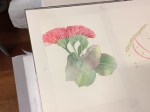 Coochie Art Group enjoyed a particularly wonderful day on Tuesday 10/8/21 with tutor Vicki Whalan. Fresh from lockdown, it was great to be creating watercolour magic with our mates. We welcomed a new member, Susan, presented with her Coochie Badge, welcomed a new visitor, Joanne and were delighted to have a former member, Natalie, back to enjoy the class. With Vicki’s help, we explored the intricacies of gum blossoms and leaves. Vicki took us through the importance of establishing colour notes, using a limited palette, and warm and cool colour wheels to inform the choice, drawing an initial detailed sketch with comprehensive notes, demonstrated when and how to use limited masking fluid and to avoid the usual traps. We were delighted to see Vicki’s chosen gum blossoms emerge beautifully, not as a botanical painting, but as Vicki’s lovely interpretation. Thank you Vicki for a wonderful day, complete with your usual very extensive class notes. These are invaluable, as members could watch Vicki’s every brush stroke, without stopping to take notes.