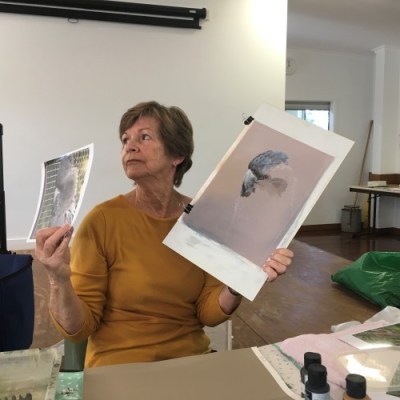 | Term 1. 2017. CAG worked through the process of applying for a Redland City Council Environmental Grant to help defray the many costs of preparing for the Exhibition – including mentoring costs and tutelage fees.Noted local artist Hilary Wakeling guided CAG through various artistic processes for painting wildlife in mixed media.