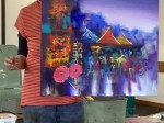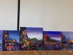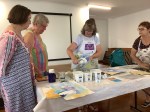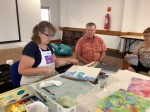 Coochie Art Group and a lovely group of visitors have enjoyed 2 wonderful, fun days with one of our favourite tutors, talented artist and gifted tutor, Jenni Kelly. Jenni took us through a loose, impressionistic approach to a market scene. We layered darks, scraped on brights, layered more brilliant darks, stencilled, rolled, dribbled paint with a screwdriver, even briefly used a paintbrush! It was a lot of fun – nothing to get wrong here- just add another layer or 2 until it feels good. Thanks Jenni for a wonderful 2 days!