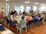 Coochie Art Group members enjoyed a fabulous day on Tuesday15/3/22, with our own wonderful tutor, Hilary Wakeling. Hilary has a real gift of inspiring members to step out of their comfort zones and stretch their paintbrushes! Hilary guided us through the intricacies of overlapping shapes, forming pleasing patterns with limited colour choices, be they harmonious, complementary or more complicated! Fun! As always, some wonderful, creations evolved under the brushes of our members. Thanks Hilary, for a fabulous day! The delightful Southerly breeze through the Coochie Hall made last week’s heat an unpleasant memory.