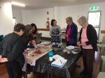 Coochie Art Group Members had a fantastic time yesterday with one of our favourite tutors, Tricia Reust. Tricia demonstrated construction of collagraph plates, and carving stencils from various materials including corrugated cardboard and foam board. Tricia then demonstrated how to ink our plates and pull different types of prints using various papers. The effects achieved were wonderful! Tricia emphasised the importance of design informing the placement of the collage elements and demonstrated using some unusual materials including snake skin! We now know which parts of the skin to use and which parts to avoid!!!! Who knew there was so much to learn about collaging snake skin? The pattern on the skin was just beautiful – this from one who doesn’t have any time for snakes!!!!! Tricia always sets a cracking pace for us, as there is so much to learn, and we do appreciate her generous tuition and extensive handouts. Thanks Tricia for a truly fabulous, informative day!